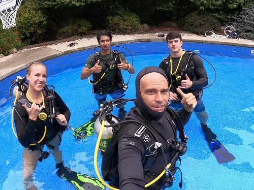 Our PADI open water students (Faye, Daniel and Patrick) had a fun-filled morning going over their confined water skills in the pool of Long Valley, NJ in Morris County. The PADI Scuba Diving Class Morris County NJ 8/7/20 event was a success. All these skills transition into the open water at Dutch Springs in PA. We also make sure to prepare the students to dive in their immediate environment which entails local diving.